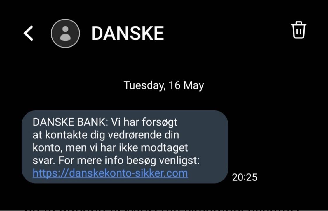 Banken opfordrer modtagere af sms'en til at slette den med det samme, men hvis man er i tvivl eller allerede har oplyst sine personlige oplysninger, skal man kontakte Danske Bank på deres (rigtige) nummer: 70 123 456.