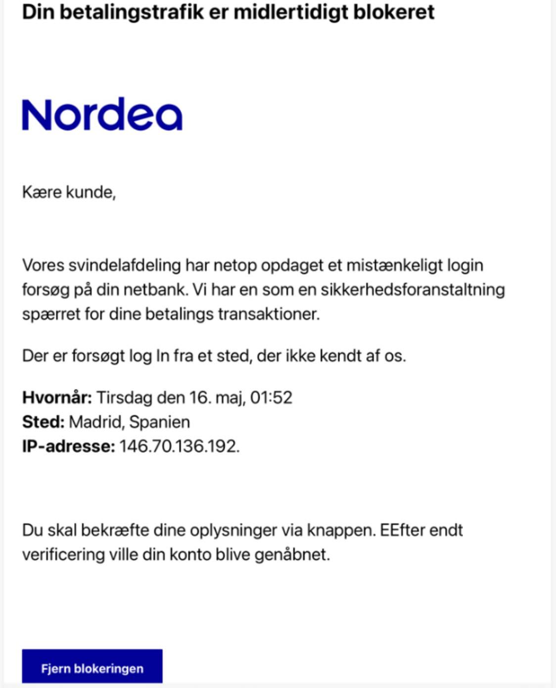 Også de falske mails fra "Nordea" indeholder links.