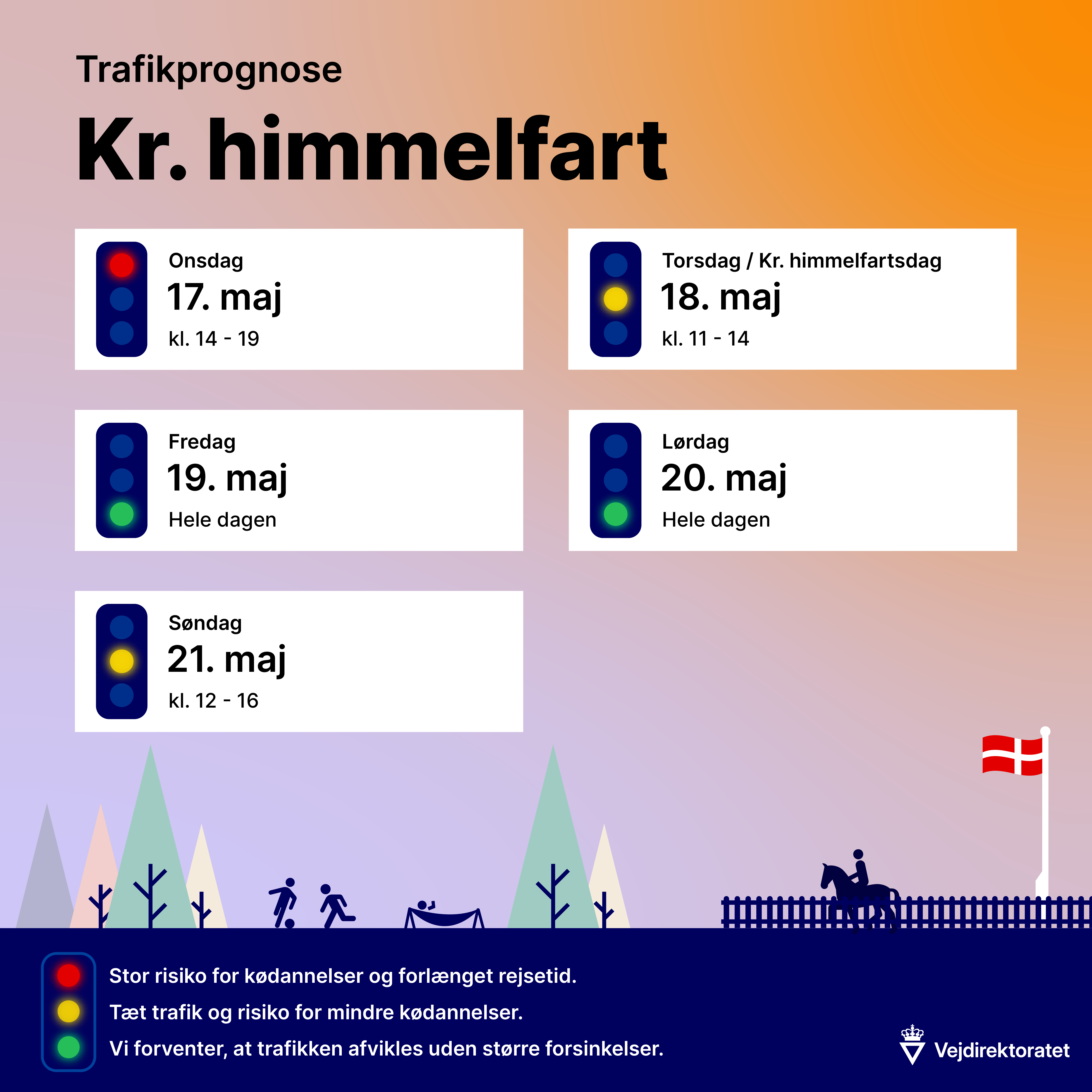 Men også på selve Kristi himmelfartsdag torsdag 18. maj forventes der at være en del trafik og risiko for mindre kødannelser i tidsrummet kl. 11.00-14.00.