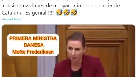 Videoen, som du kan se her, fik for alvor vind i sejlene hen over den forgangne weekend, efter at blandt andet den spanske advokat og journalist Javier Gimeno Priede bragte den på sin Twitter-profil i fredags. Det medførte flere tusinde delinger, hvor af det fremgår af såvel Priedes opslag som en række af kommentarerne, at oversættelsen af Mette Frederiksens tale skulle være rigtig.